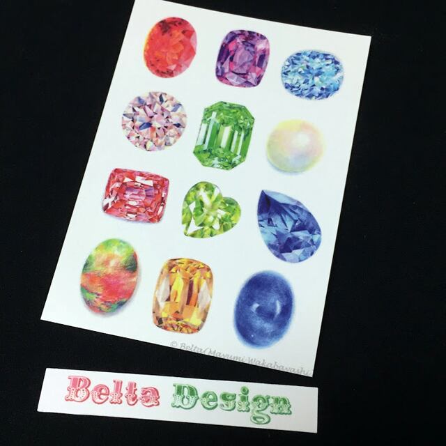 モチーフは色鉛筆で描いた誕生石イラストです。